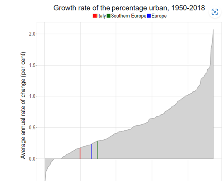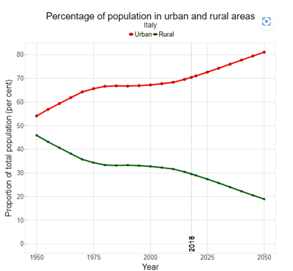 Un incremento della popolazione, una disponibilità di risorse alimentari e di servizi limitata, un invecchiamento generale che sarà bilanciato dalla immigrazione, producono un effetto evidente già da qualche anno: l’inurbamento massiccio di masse di persone che si spostano dalle aree rurali alle grandi città.