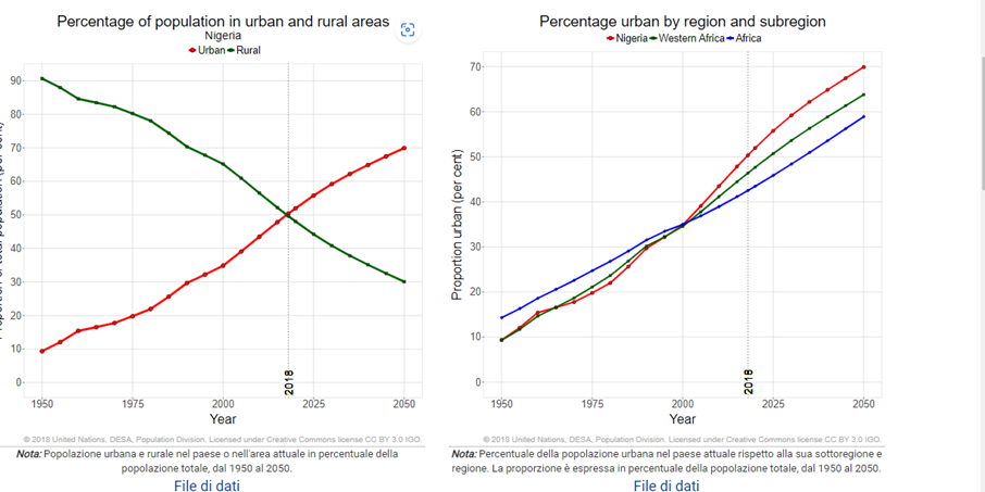 In basso vediamo il grafico che rappresenta questo fenomeno in Nigeria e in Africa e subito dopo in Italia ed in Europa.