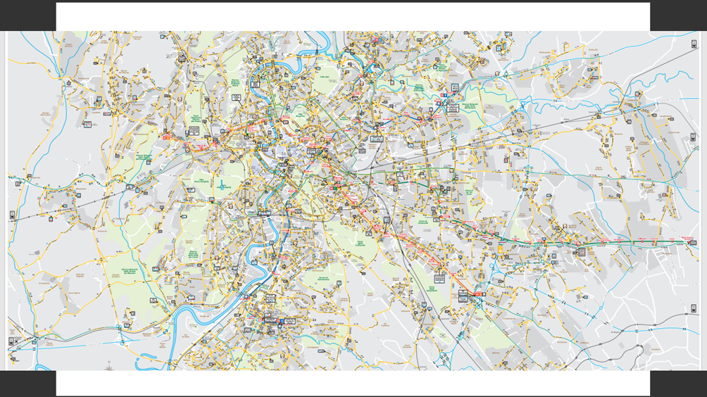 Resta da affrontare il tema del trasporto pubblico. Questa è la mappa del trasporto pubblico di Roma.